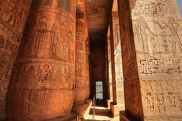 Now, it's time to go discover the secrets of Deir Al Madina. This was where workers and artisans who created all this beauty in the West Bank used to live. The sites date back to more than 3000 years ago and include many monuments to view and admire, We saved the best to the last! Your last visit of the day will be to the Valley of the Queens. This marvelous ancient royal burial chamber belonged to the queens of the New Kingdom of ancient Egypt, While the kings were buried in the Valley of the Kings, the queen had their necropolis beginning with the 18th till the 20th dynasty. The best tombs include the tomb of Queen Nefertari, the most charming all over Luxor, At the end of this enjoyable day, you return to your hotel in Luxor.
