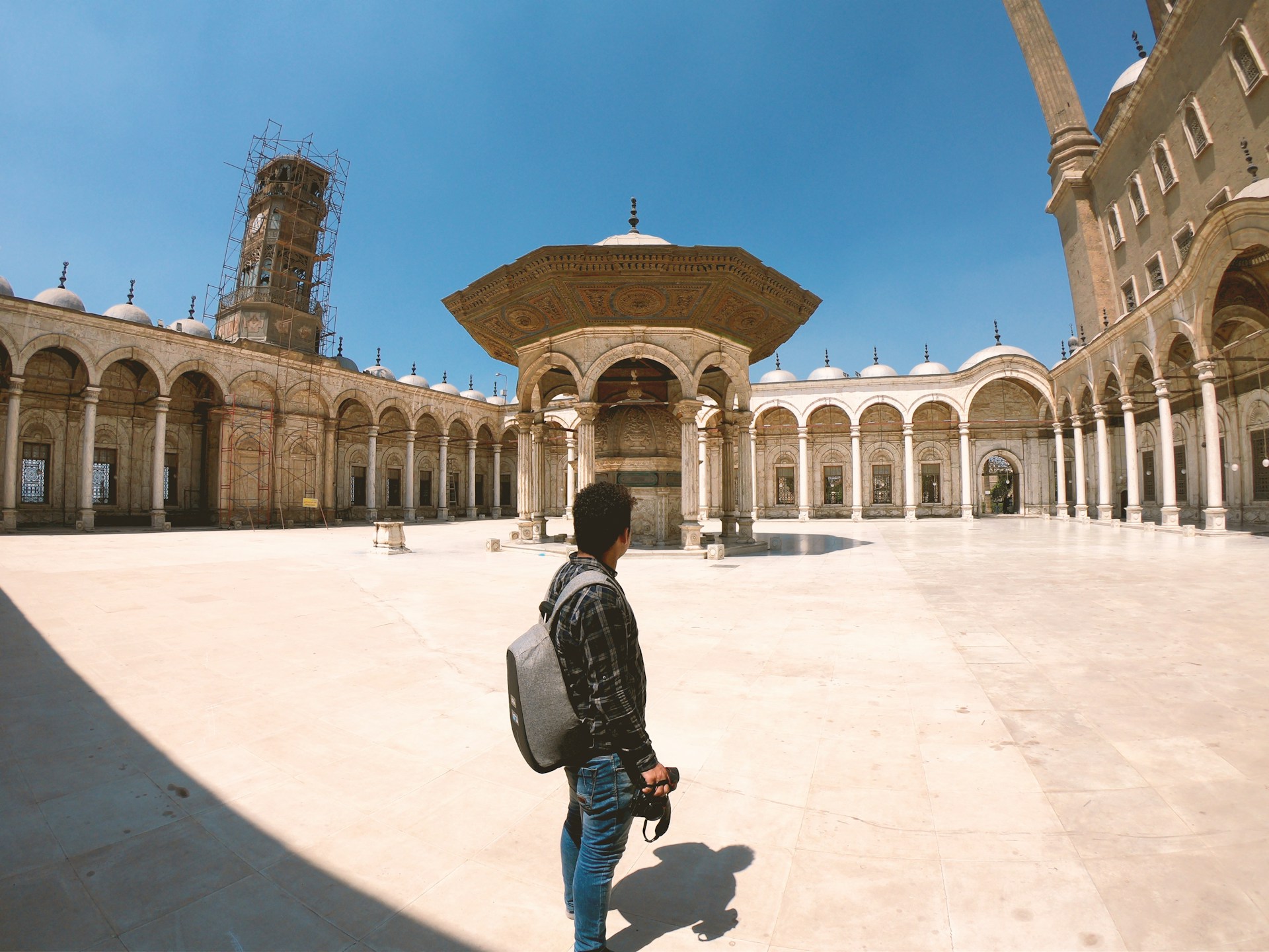 You will then ascend to the Salah El-Din Citadel, also known as the "Cairo Citadel." Completed in 1182 AD by the great conqueror Salah El-Din, this powerful fortress dominated the skyline for centuries as a center of rule and a shield against invaders. Inside its formidable walls, you will discover a hall of justice, royal palaces, and breathtaking gates. Standing proudly within the citadel is the Mohamed Ali Mosque, the "Alabaster Mosque." Built between 1830 and 1848 AD to mirror the Blue Mosque in Istanbul, it stands as a symbol of independence with its soaring minarets and Ottoman-style architecture infused with French Rococo influences and vibrant gold and red finishes.